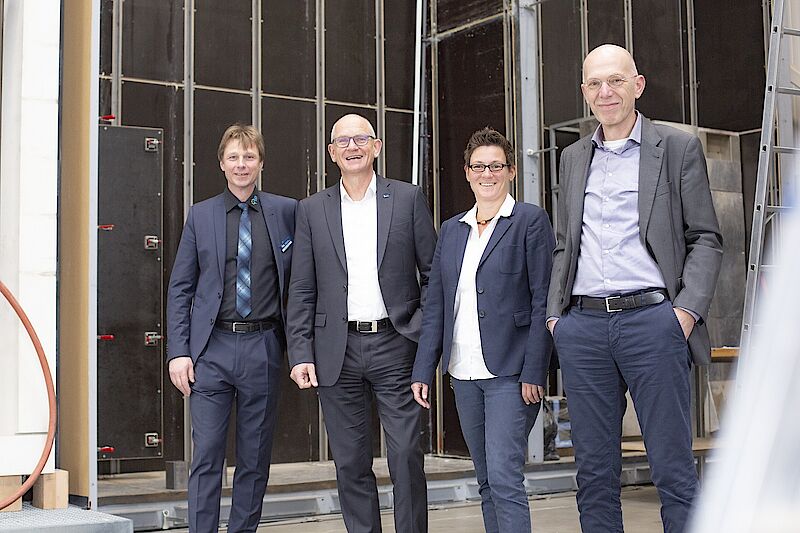 Bei der Führung durch die Prüfhallen unterstrich Dr. Dirk Stenkamp den Mehrwert des Zusammenschlusses für die Kunden von DMT und PfB. Mit Stefanie Steinmeier, Leiterin des DMT-Geschäftssegmentes Brandtechnische Prüfungen und Dr. Christoph Sinder, zweiter Geschäftsführer des PfB sowie Leiter des DMT-Geschäftsfeldes Anlagen- & Produktsicherheit bei DMT, wurde der Integrationsprozess in den Unternehmensverbund erläutert. „PfB und DMT freut das Interesse und die aktive Unterstützung durch den Konzernvorstand Dirk Stenkamp. Im Verbund der TÜV NORD GROUP und mit DMT an der Seite haben wir vielversprechende Möglichkeiten, Bauteilprüfungen umfassend, mit hoher Expertise und für unsere Kunden unkompliziert durchzuführen“, so Daniel Müller.