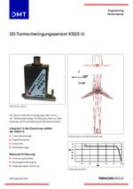 Die kompakten Sensoren KS22-U und KS22-I der DMT messen Turmschwingungen in zwei Dimensionen mit einem Messbereich von ± 5 g. Messwerte werden als 5 ± 3 V, bzw. 4…20 mA Signal an die Anlagensteuerung übermittelt, wodurch die Anlage bei einer Überschreitung der vorgegebenen Grenzwerte sicher heruntergefahren werden kann.