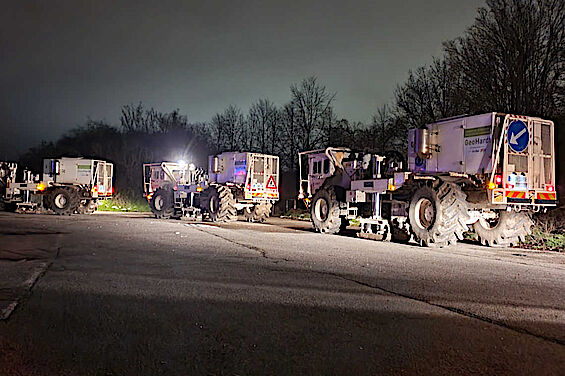3D-seismische Exploration in dicht besiedelter Rhein-Neckar-Region - Die Erkundung des Untergrundes mittels 3D-Seismik bis in Tiefen von 5.000 Metern und mehr ist die Grundvoraussetzung für erfolgreiche Bohrungen und damit die Nutzung von Tiefer Geothermie. Besonders herausfordernd können diese Untersuchungen in dicht besiedelten Stadtgebieten sein. Im Auftrag der GeoHardt GmbH, einem Unternehmen der EnBW Energie Baden-Württemberg AG und der MVV Energie AG aus Mannheim, hat DMT im Februar und März 2023 innerhalb von nur sechs Wochen ein über 8.000 Hektar großes Areal in der Rhein-Neckar-Region mit Seismiktrupps erkundet. Die Datenauswertung und -modellierung wird die Basis für die Versorgung regionaler Stadt-quartiere mit Wärmeenergie aus Tiefer Geothermie liefern.