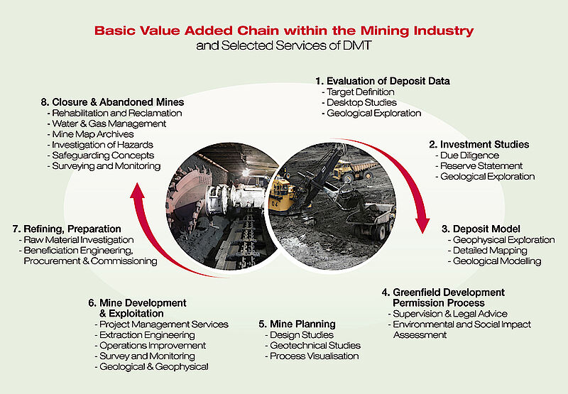 The extensive expertise within the DMT group covers the entire life cycle of a mine, namely: